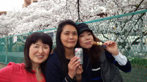 朝のレッスンで気持ち良く身体を動かした後、柿生の桜並木の下でお花見ランチ!花よりダンゴ?